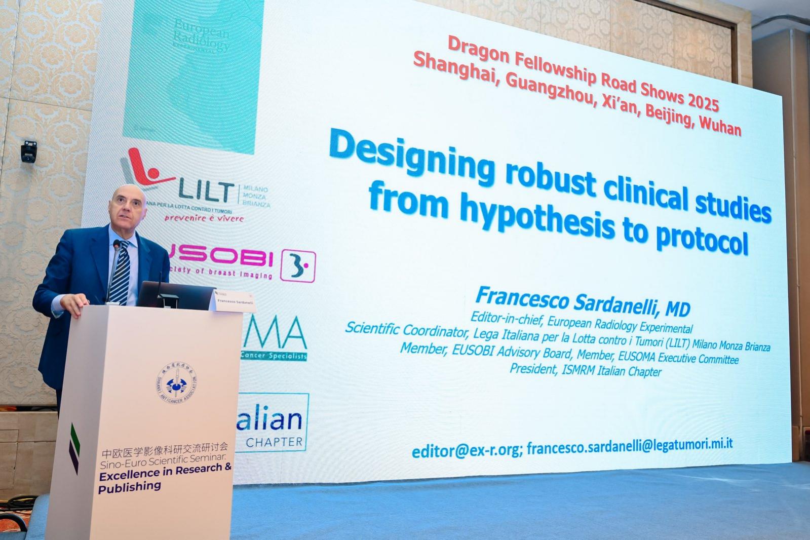 At the seminar, Prof. Bernd Hamm, Senior Professor at Charité-Universitätsmedizin Berlin and Editor-in-Chief of European Radiology, delivered lectures titled “Golden Rules of Research” and “How to Write a Good Paper and Select a Journal”, in which he also conducted real-case analyses of common reasons for manuscript rejection. Prof. Francesco Sardanelli, Scientific Coordinator of the Milan-Monza-Brianza Alliance Against Cancer in Italy and Editor-in-Chief of European Radiology Experimental, gave a lecture on “Designing Robust Clinical Studies: From Hypothesis to Protocol”, providing insights into techniques for clinical study design.