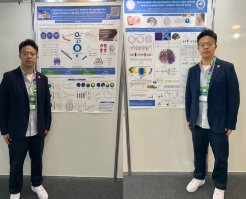 The theme of this year’s congress was “Headache Care for All: Rising to the Challenge”. A total of 2,221 researchers from 80 countries attended, showcasing and discussing over 500 studies spanning headache-related basic science, public health, translational medicine, artificial intelligence, and clinical research. Li Jiahao, an M.S. candidate from Professor Luo Guogang’s headache research team in the Department of Neurology at the First Affiliated Hospital (FAH) of Xi’an Jiaotong University (XJTU), was invited to the congress and gave a poster presentation on two original research findings. The first study, titled “Alterations in parietal EEG features during high-flow oxygen therapy of episodic cluster headache patients”, focused on the dynamic functional brain changes in patients with cluster headache. The second study,
