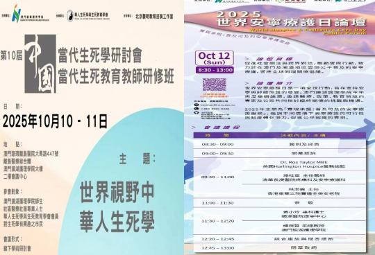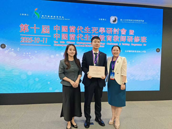 From October 10 to 12, 2025, the 10th Chinese Contemporary Thanatology Conference was successfully held at Kiang Wu Nursing College of Macau. With the theme “Chinese Thanatology in a Global Perspective”, the conference brought together experts and scholars from China and abroad to explore cutting-edge topics in life education, end-of-life care, and humanistic care.