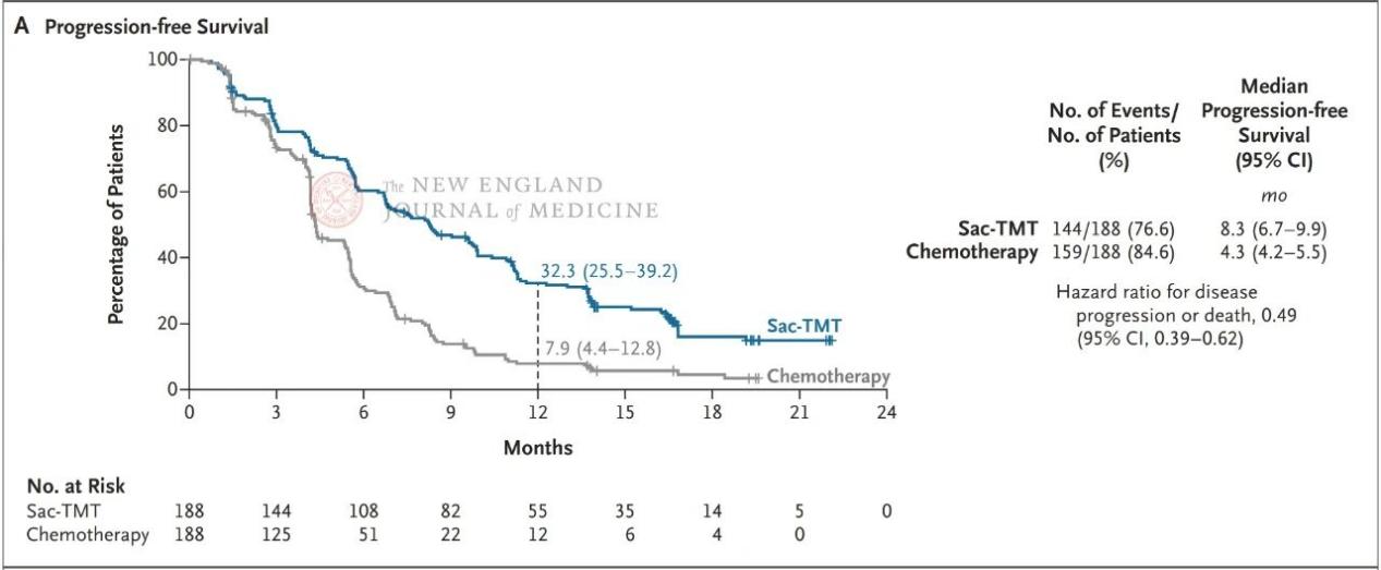 Figure 1. PFS analysis results for the sac-TMT group versus the chemotherapy group.