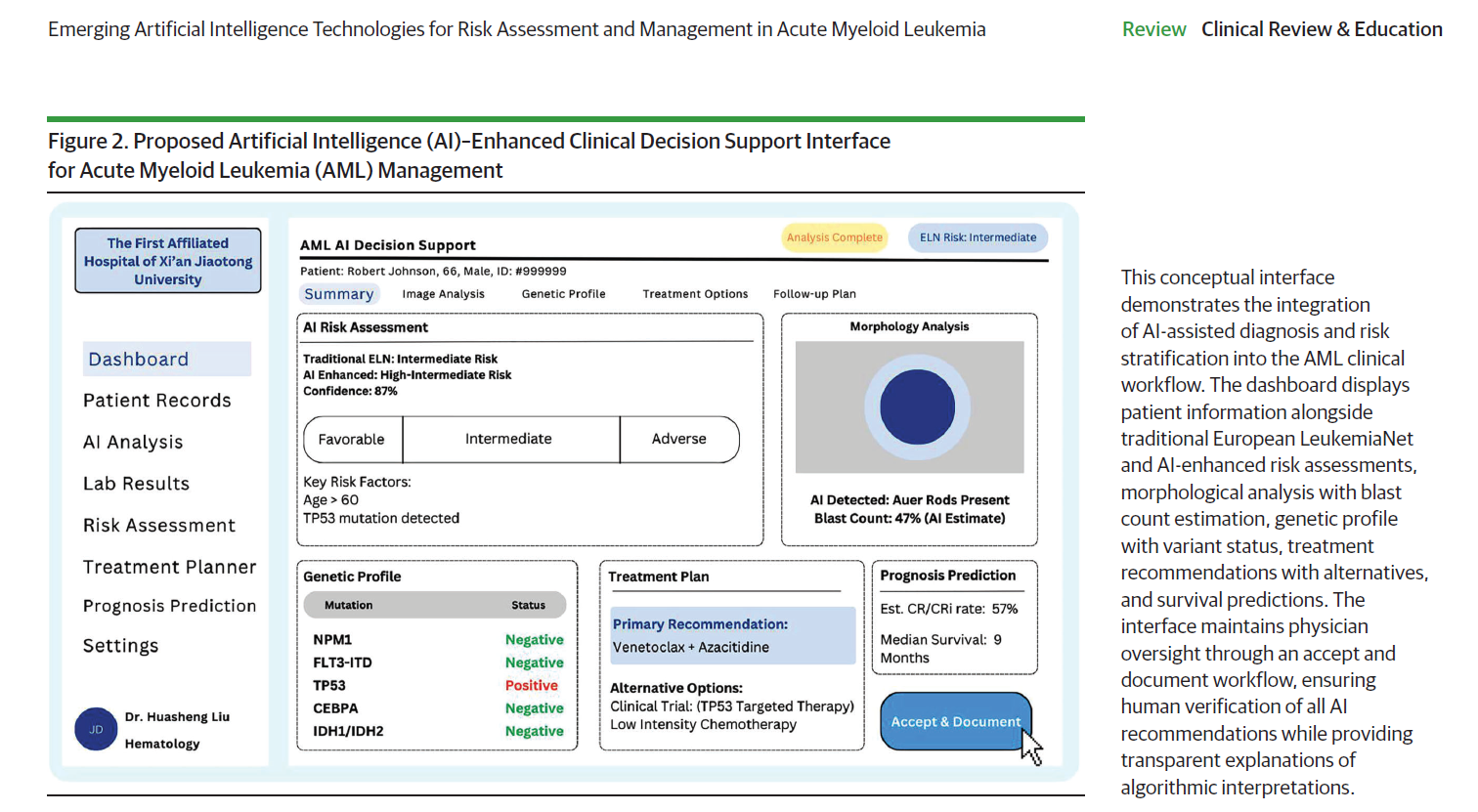 On November 6, 2025, JAMA Oncology (2024 IF: 22.3), a leading international medical journal in the field of oncology, published online a review article entitled “Emerging Artificial Intelligence Technologies for Risk Assessment and Management in Acute Myeloid Leukemia: A Review”.
