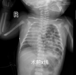 Immediately after birth, the baby developed severe respiratory distress. The neonatology team rapidly performed endotracheal intubation on the delivery table to establish effective ventilation, and the infant was then transferred to the neonatal unit for hemodynamic stabilization. At 24 hours after birth, imaging revealed that a large portion of the spleen and intestines remained herniated into the thoracic cavity, posing an imminent risk of bowel strangulation. In accordance with clinical guidelines, the pediatric surgery team decided to perform minimally invasive thoracoscopic repair. During the operation, Director Cao Zhenjie’s team carried out precise maneuvers in a very limited space, gently reducing the herniated abdominal organs back into the abdominal cavity. Given the large diaphragmatic defect, a biological patch was used to reinforce and repair the diaphragm. With continuous support from the anesthesiology and nursing teams, the procedure was successfully completed. Postoperatively, the infant’s lung function gradually recovered, and the baby was successfully weaned from the ventilator.