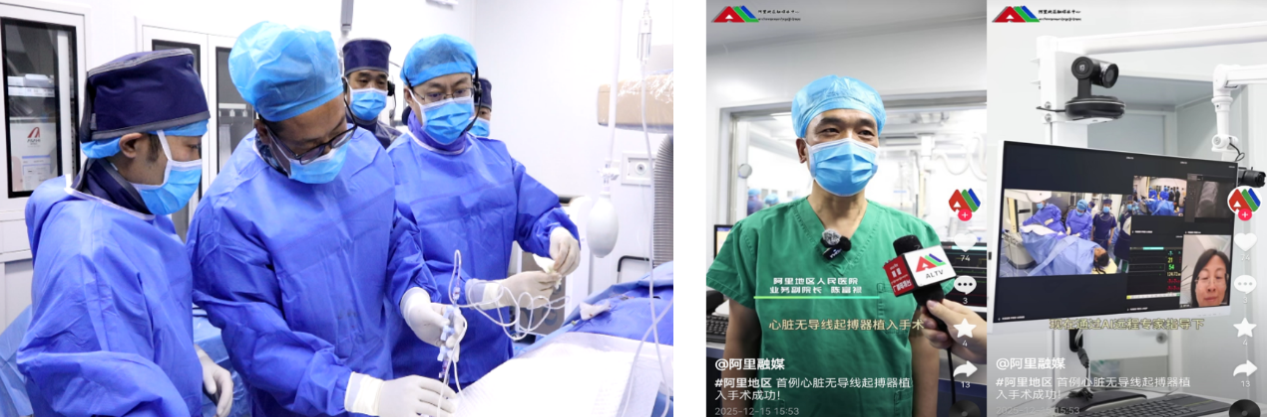 On December 14, the Department of Cardiovascular Medicine team of the First Affiliated Hospital (FAH) of Xi’an Jiaotong University (XJTU), relying on its independently developed “5G+AI Smart Remote Consultation and Surgical Collaboration Platform”, successfully performed the first leadless cardiac pacemaker implantation in Nagri Prefecture at Nagri Prefecture People’s Hospital in Xizang for a patient of Zang ethnicity. This achievement fills a regional technical gap and brings new “heart” hope to people on the plateau.