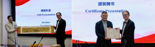 Han Jianfeng introduced Academician Schiavo’s academic profile and emphasized that the Department of Neurology at the FAH has consistently upheld the philosophy of “open collaboration and benchmarking against international standards”. He noted that this collaboration represents a key opportunity to enhance the department’s core competitiveness and to advance the diagnosis, treatment and research of neurological diseases toward world-class levels. Han Jianfeng then presented the letter of appointment to Academician Schiavo, Professor Qu Qiumin presented a commemorative gift on behalf of the hospital, and Academician Schiavo reciprocated with books on the city of London and the development history of the UCL Queen Square Institute of Neurology, formally establishing a bridge for long-term cooperation between the two sides.